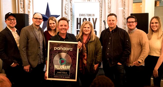 During an exclusive album preview event in Nashville this week for loyal PANDORA listeners, Chris Tomlin was recognized as the first Christian artist to reach the Billion streams threshold on PANDORA and was presented with their BILLIONAIRE award.