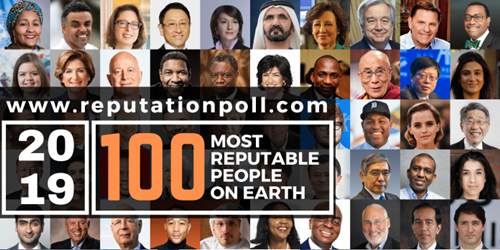 Recently announced by Reputation Poll International in its 2019 publication, The list which includes distinguished personalities from all sectors, recognizes leaders who have maintained a high level of credibility in discharging their duties, and have kept commendable and exemplary reputation for public emulation.