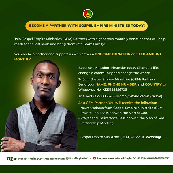 Join Gospel Empire Ministries (GEM) Partners with a generous monthly donation that will help reach to the lost souls and bring them into God’s Family!