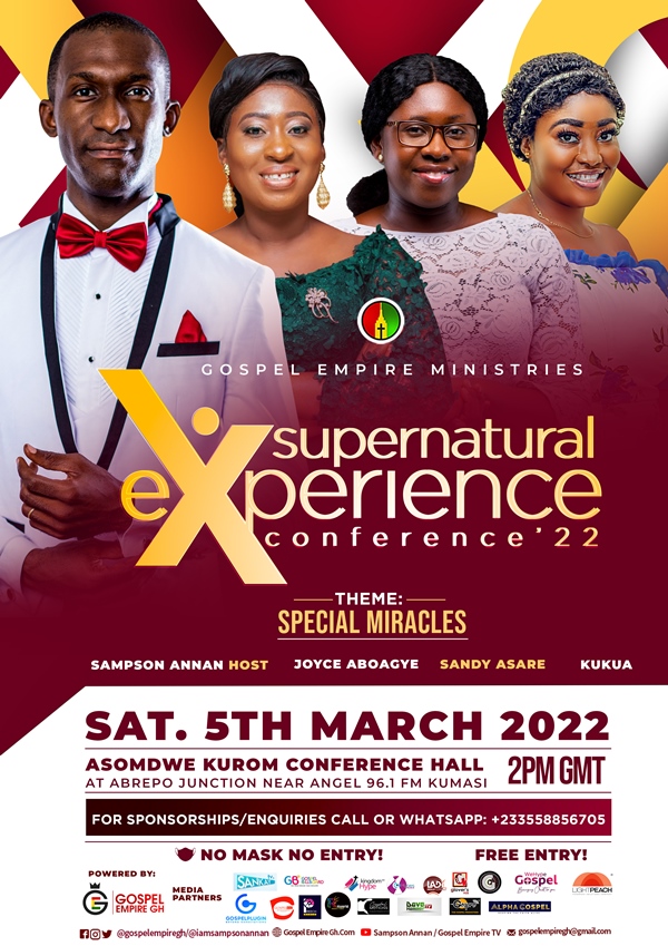 Admission is Free and the general public is invited. For more details about the “Supernatural Experience” Conference 2022, kindly visit GospelEmpireGh.com to interact, get inspired, and be informed.