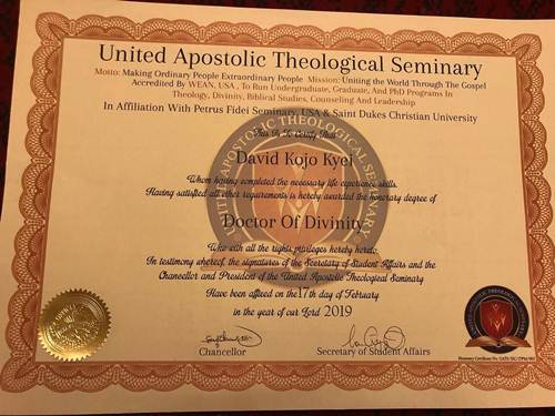 Music producer, David Kojo Kyei, popularly known as Kaywa, has been conferred with a Doctor of Divinity certificate from the United Apostolic Theology Seminary.