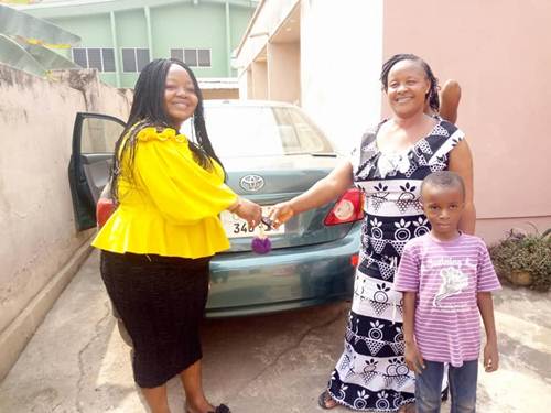 There were overwhelming moment of joy and fulfilment for her mother when she received the gift (Toyota Corolla) from her daughter, Selina Boateng.